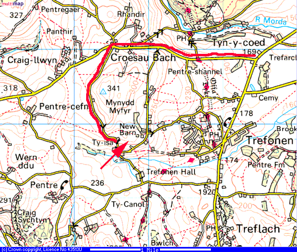 You will then pass the Highwayman pub on the left hand side. 300 yards past the Highwayman, take the left fork just before the Shell garage (near JT Hughes Honda Garage) towards Trefonen.